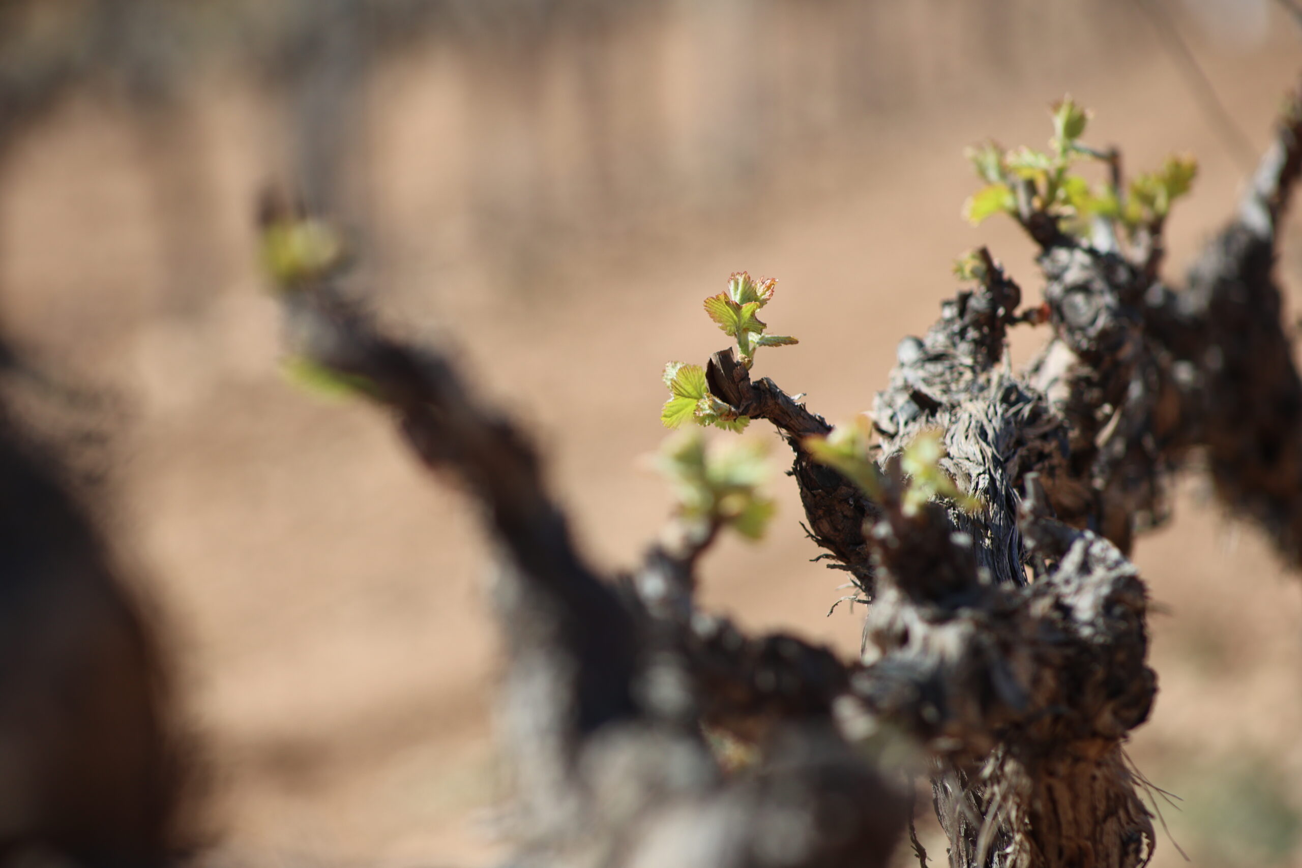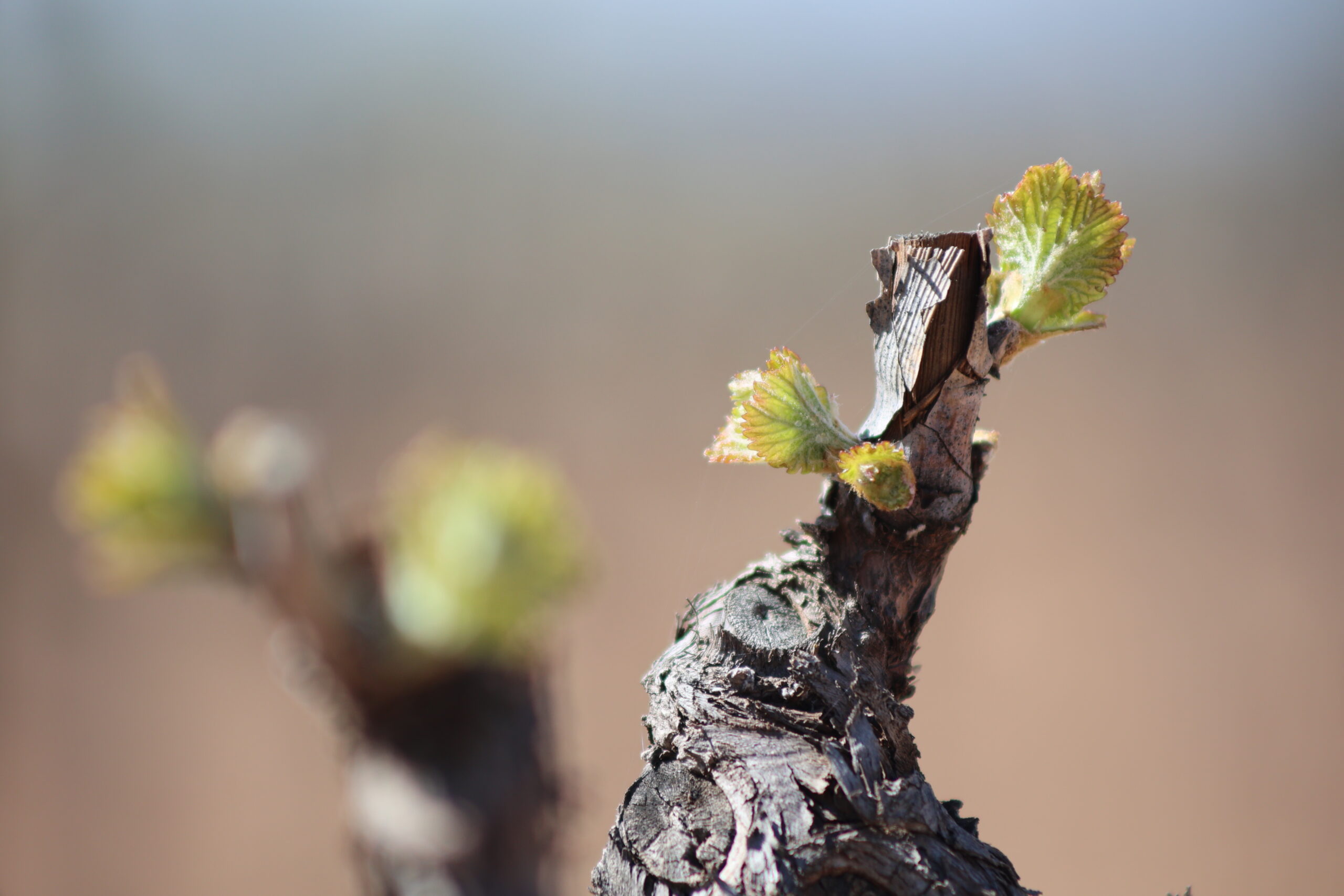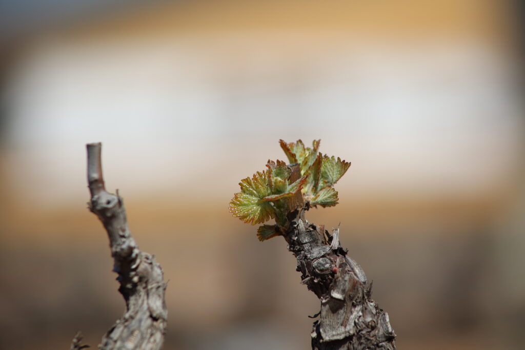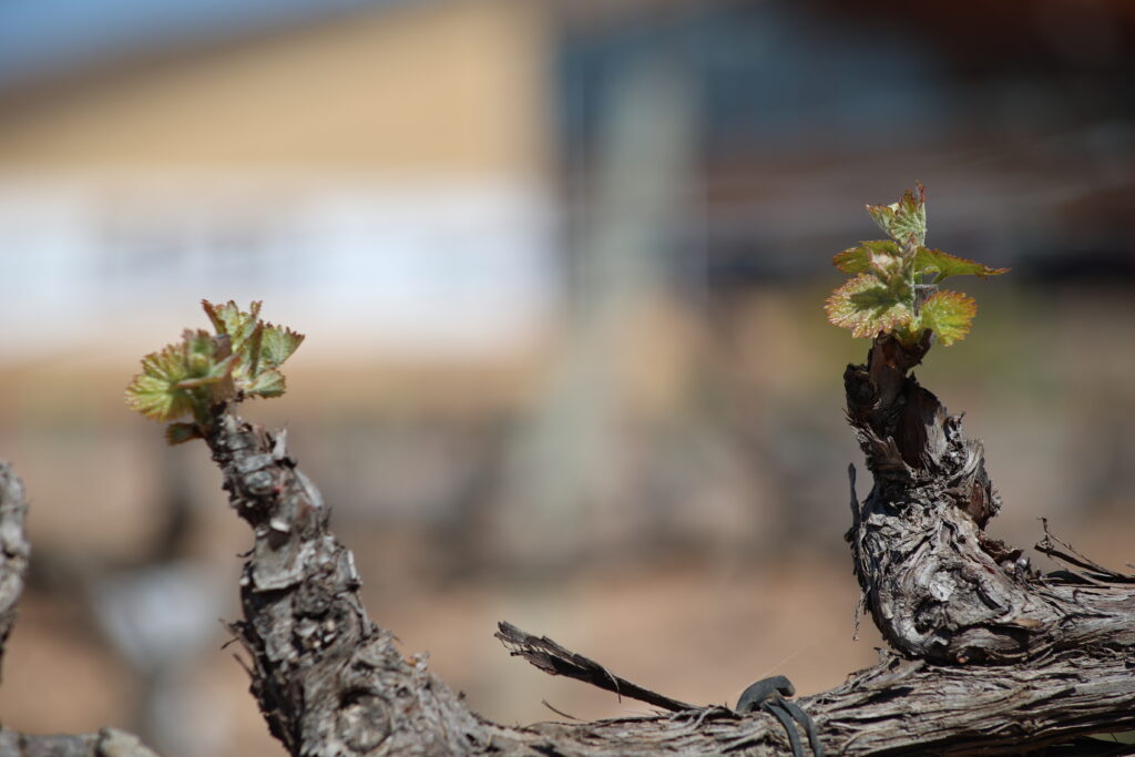 Con la llegada de la primavera, el viñedo inicia su ciclo anual con la brotación. Tras el invierno, las yemas de la vid se abren y aparecen los primeros brotes verdes, marcando el inicio de la nueva añada.